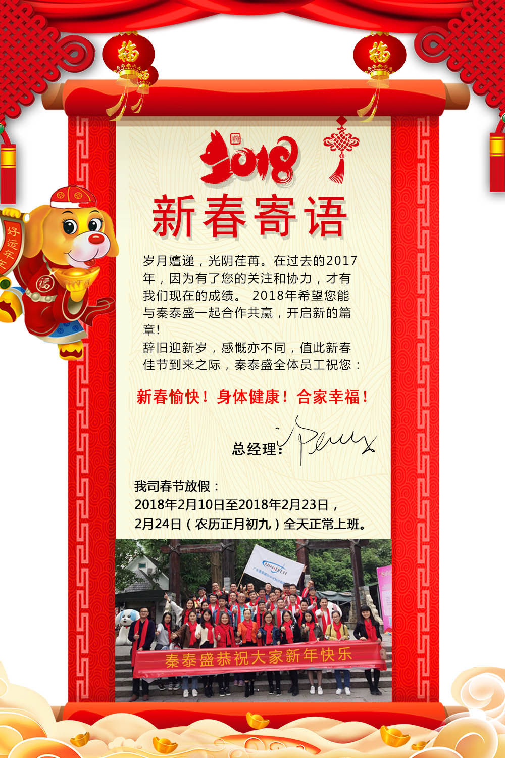 2018年新年寄語-秦泰盛給您拜年了